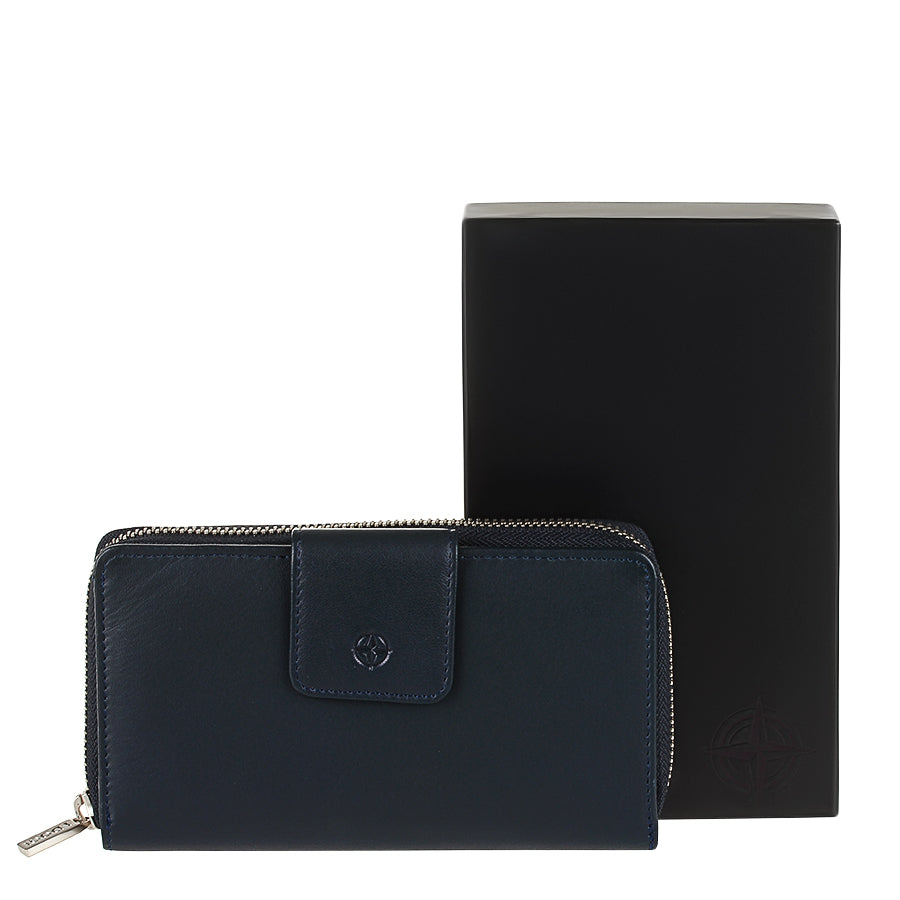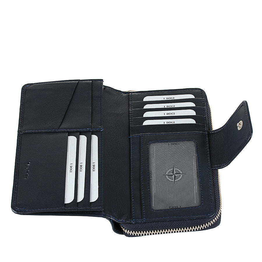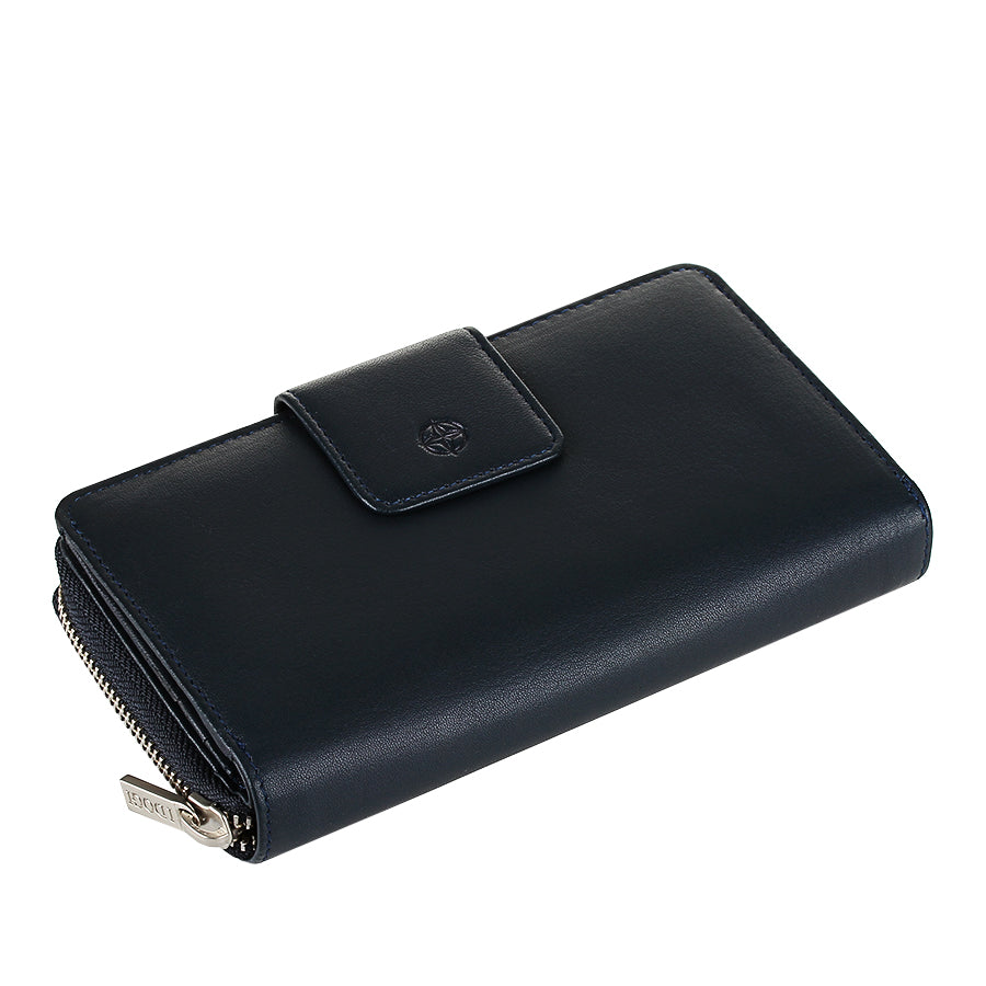Tony Perotti ダークブルー レザー オーガナイザーウォレット ジッパー開閉 — Cortina 5084 ネイビー
