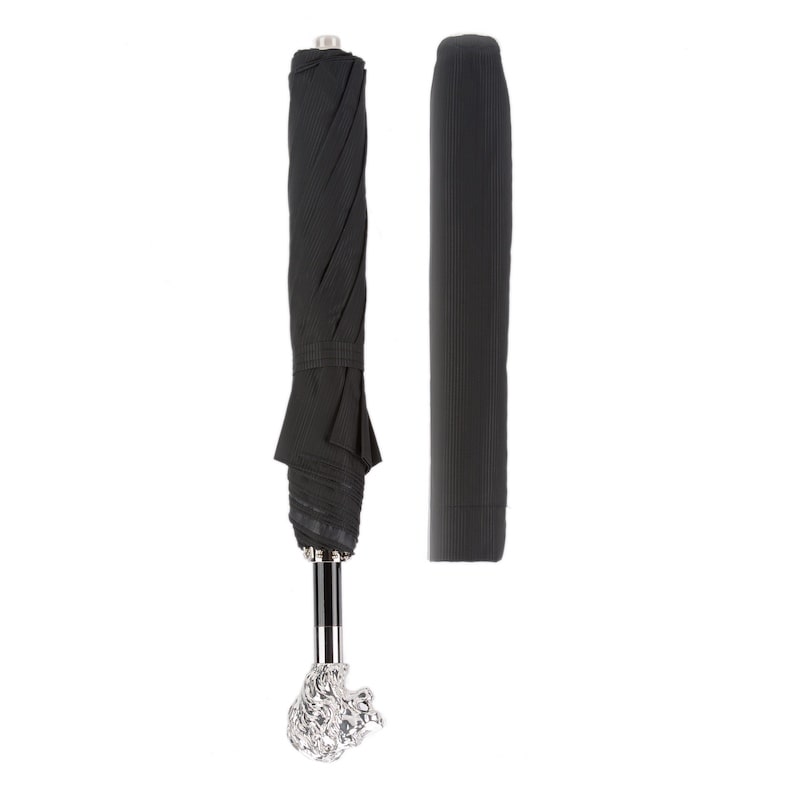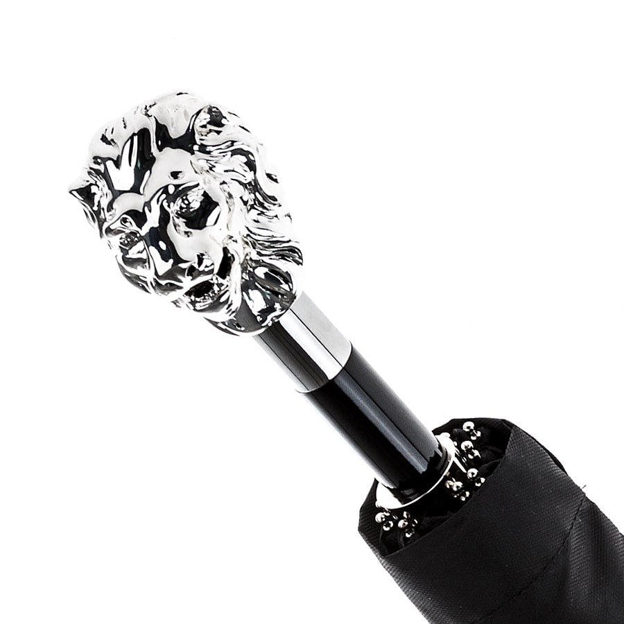 有名なPasottiブランドによってイタリアで作られたこの傘は、長持ちするように設計されています。ブラックカラーが洗練された雰囲気を醸し出し、シルバーの金具がエレガントさをプラスします。ライオンの頭の形をしたハンドルが魅力をさらに高めています。