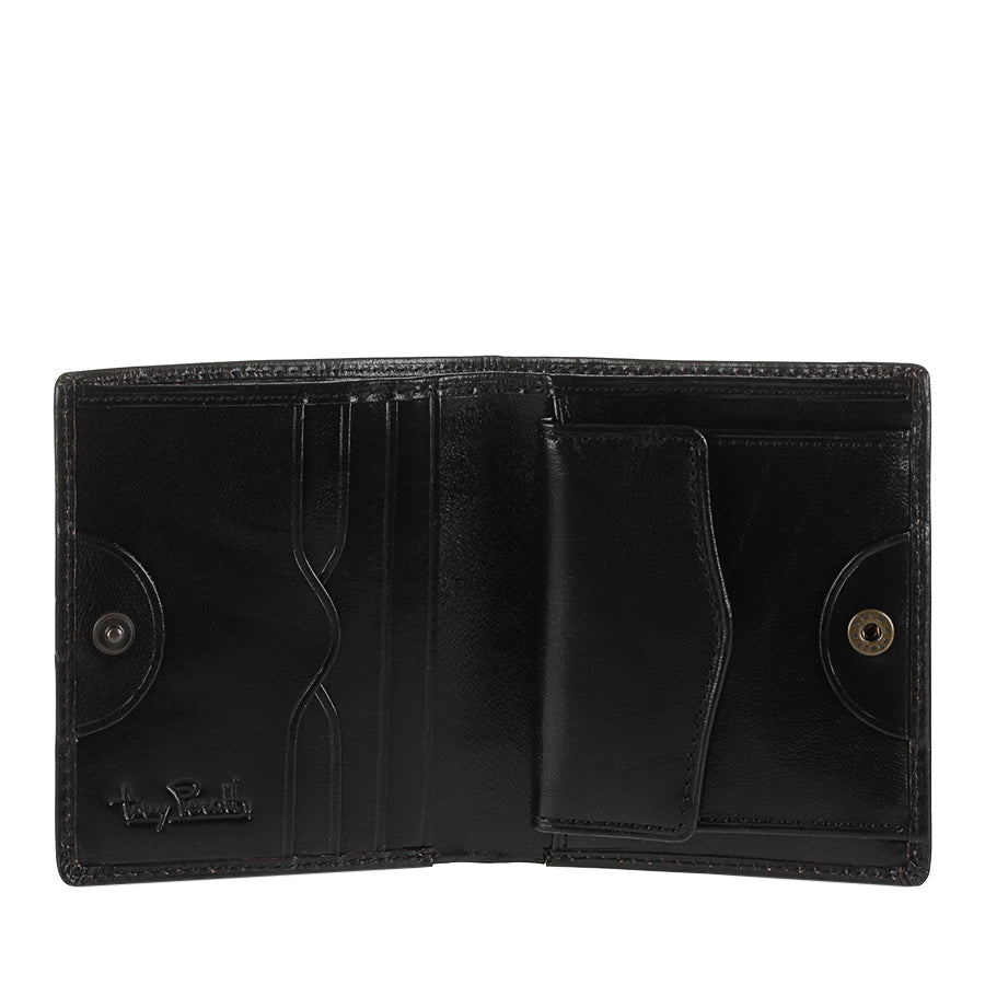 このコンパクトウォレットの洗練された機能的なデザインは、外出中の現代男性に最適です。ボタン開閉式なので、財布の整理されたコンパートメントに貴重品を安全に収納できます。前面にはトニー・ペロッティのブランドロゴがエンボス加工されており、ただでさえスタイリッシュなアクセサリーに洗練されたタッチを加えています。