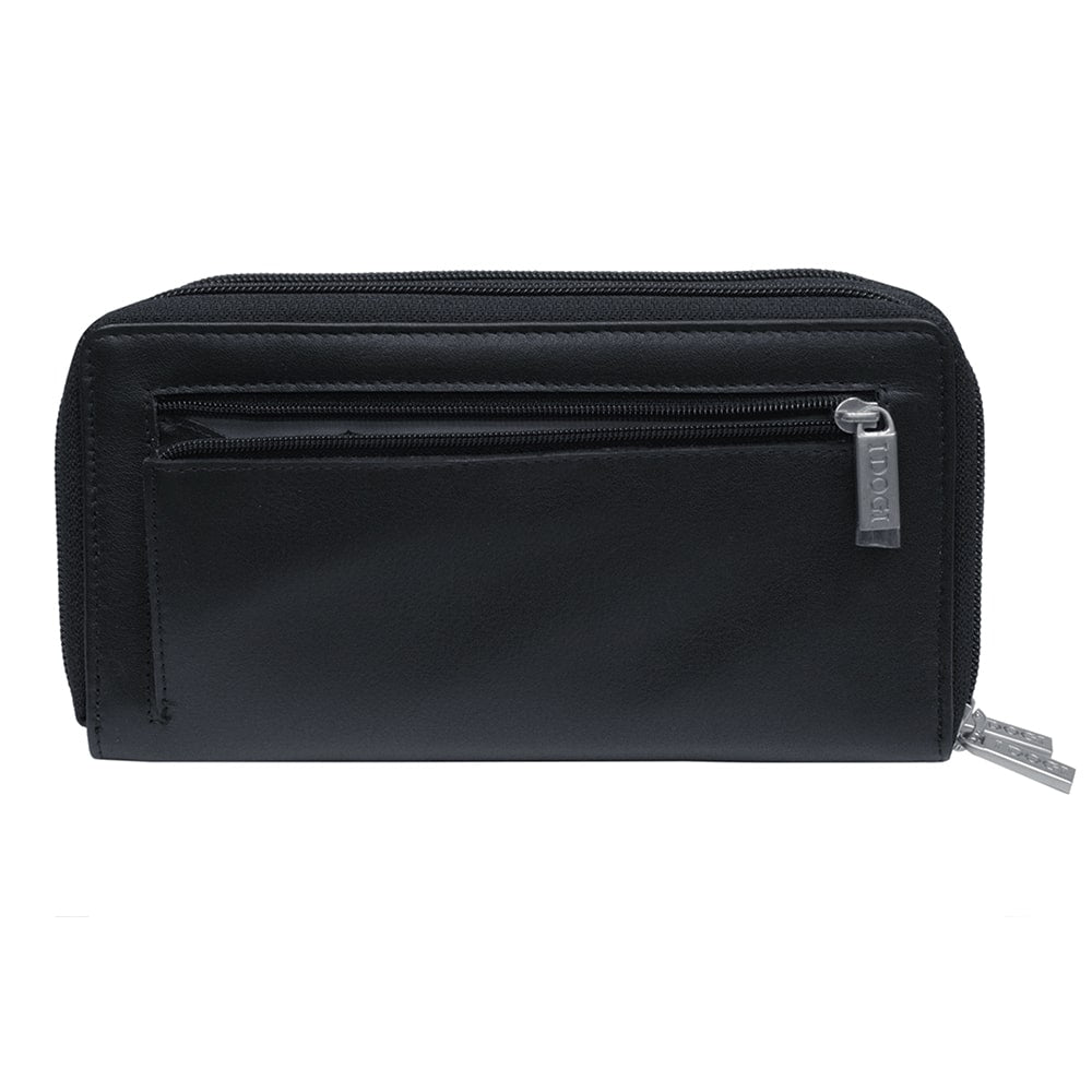 19.5 x 10.5 cmの財布は、かさばらずにすべての必需品を収納できる十分な大きさです。この財布には 2 つのメインコンパートメントがあり、それぞれがジッパー開閉で、紙幣、領収書、その他の重要な書類を保管するのに十分なスペースがあります。内側には、カードやIDを収納できる追加のポケットと、ジッパー付きのコインホルダーがあります。背面にはジッパー付きポケットがあり、さらに収納力があります。