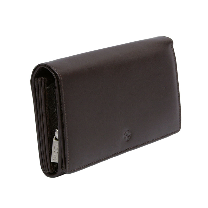 Deze portemonnee is ontworpen voor iedereen die klassieke organisatie in een elegant dagelijks formaat waardeert, en sluit met een overflap en drukknoop, waardoor de inhoud veilig blijft en tegelijkertijd een slank en gracieus silhouet behouden blijft.