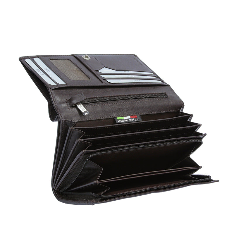 Tony Perotti Dames Portemonnee van Bruin Leer met Overslag en Muntvak — Cortina 5032 moro