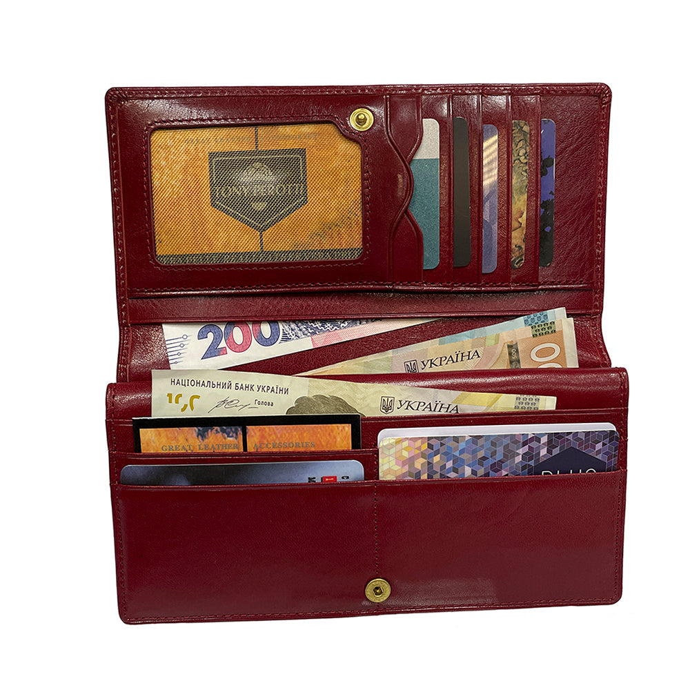 Deze rode leren portemonnee, handgemaakt in Italië, weerspiegelt de kenmerkende kwaliteit en ingetogen elegantie van Tony Perotti-accessoires.