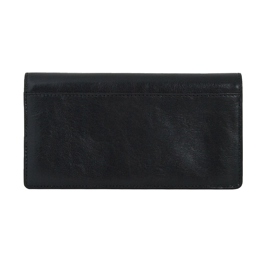 De zwarte kleur van het leer is zowel elegant als tijdloos, terwijl het ontbreken van een gesp of plooien bijdraagt aan het gestroomlijnde en minimalistische uiterlijk. Of je nu gekleed bent in een pak of casual kleding, deze portemonnee is het perfecte accessoire om je look compleet te maken.