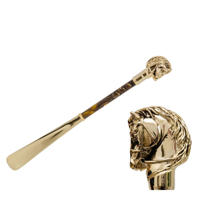 Golden Horse shoehorn with mother-of-pearl brown handle Pasotti CS W41PO