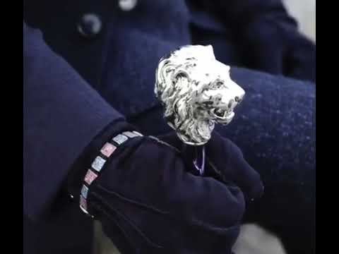 Introducing the exquisite purple cane umbrella from Pasotti. This stylish accessory with a handle in the shape of a silver lion will be an ideal addition for men who appreciate quality and exclusivity.
