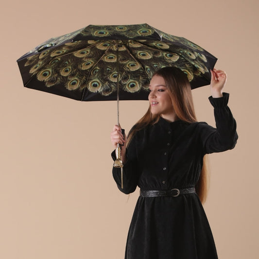 Парасоля жіноча чорна з принтом Павич Pasotti 257 HAWAII P11