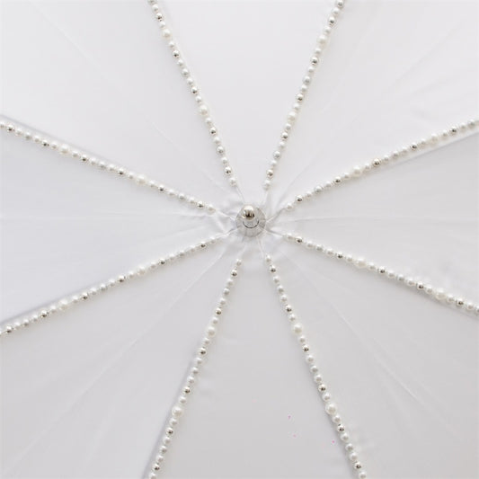 Елегантна біла парасолька для нареченої з перлами нашитими в ручну по куполу від Pasotti
