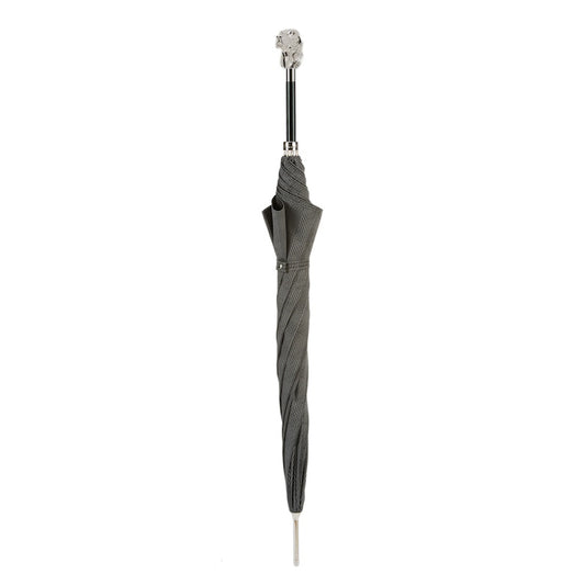 Розкішна чоловіча сіра парасоля Pasotti з плетеною шкіряною ручкою
