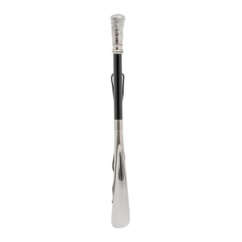 Ручка цієї ложки для взуття виготовлена з чорної посрібленої смоли з дерев'яним стрижнем і наконечником з ABS-пластика, що додає їй довговічності. Чорний матовий дерев'яний корпус ідеально доповнює срібну фурнітуру, надаючи ложці для взуття Pasotti CS W34 в класичному стилі елегантного та стильного вигляду. Довжина ріжка для взуття становить 50 см, що забезпечує достатній радіус дії для легкого та зручного використання.