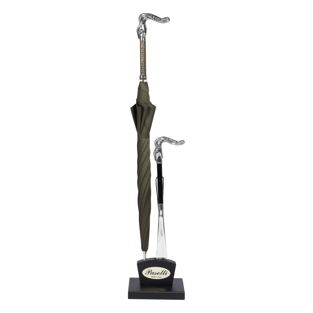 Призначена для однієї ложки для взуття та однієї тростини-парасолі, ця підставка є зручним та елегантним рішенням для зберігання необхідних речей впорядковано та легкодоступно. Підставка прикрашена логотипом бренду Pasotti, що демонструє вашу прихильність до розкоші та якісної майстерності.