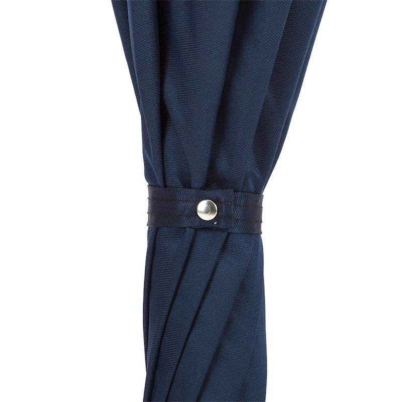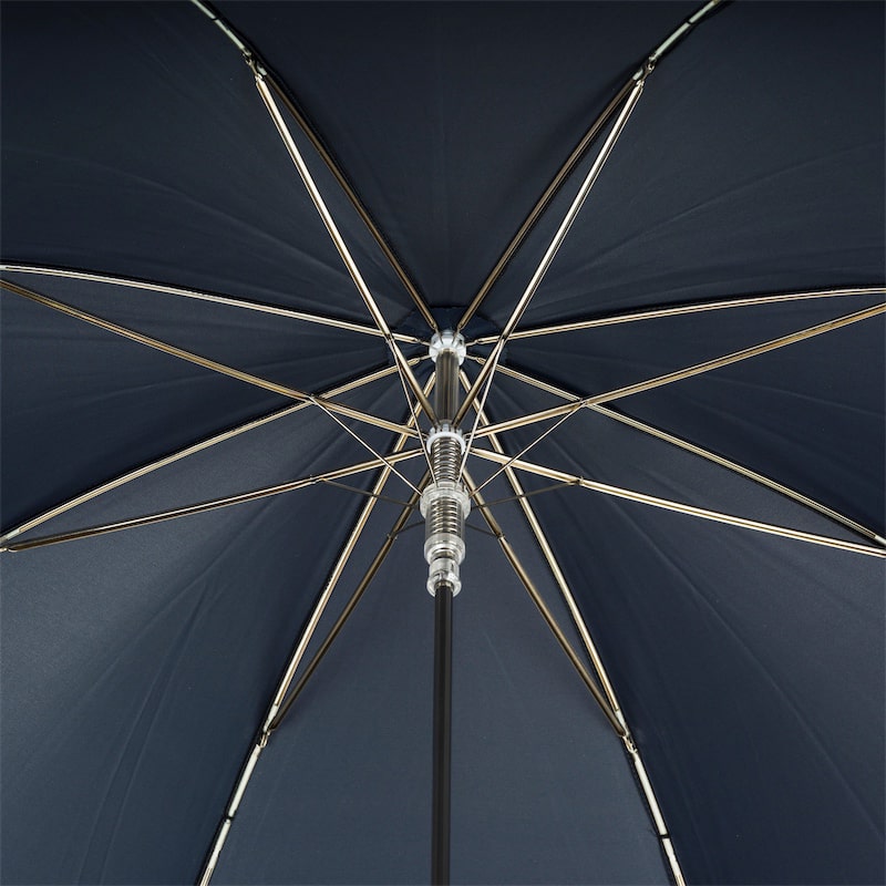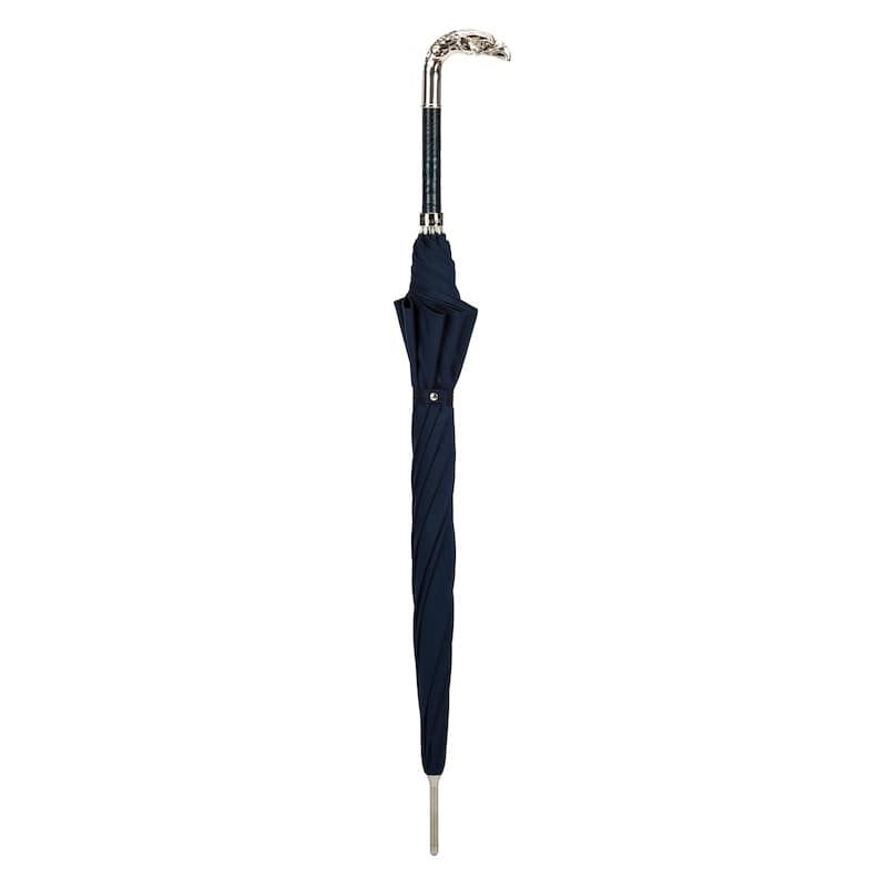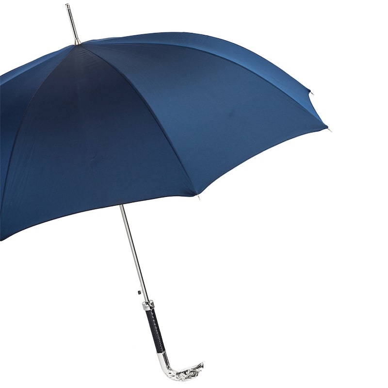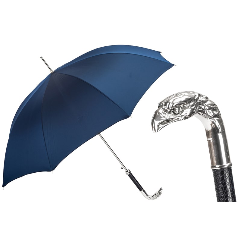 Синя тканина цієї парасольки прикрашена вертикальним візерунком, що надає елегантності її загальному вигляду. Ручка виконана зі сріблястого металу, на якій у приголомшливих деталях зображена голова орла. Напівавтоматичний механізм дає змогу легко відкрити парасолю простим натисканням кнопки, а ручне закриття надає їй традиційного шарму.